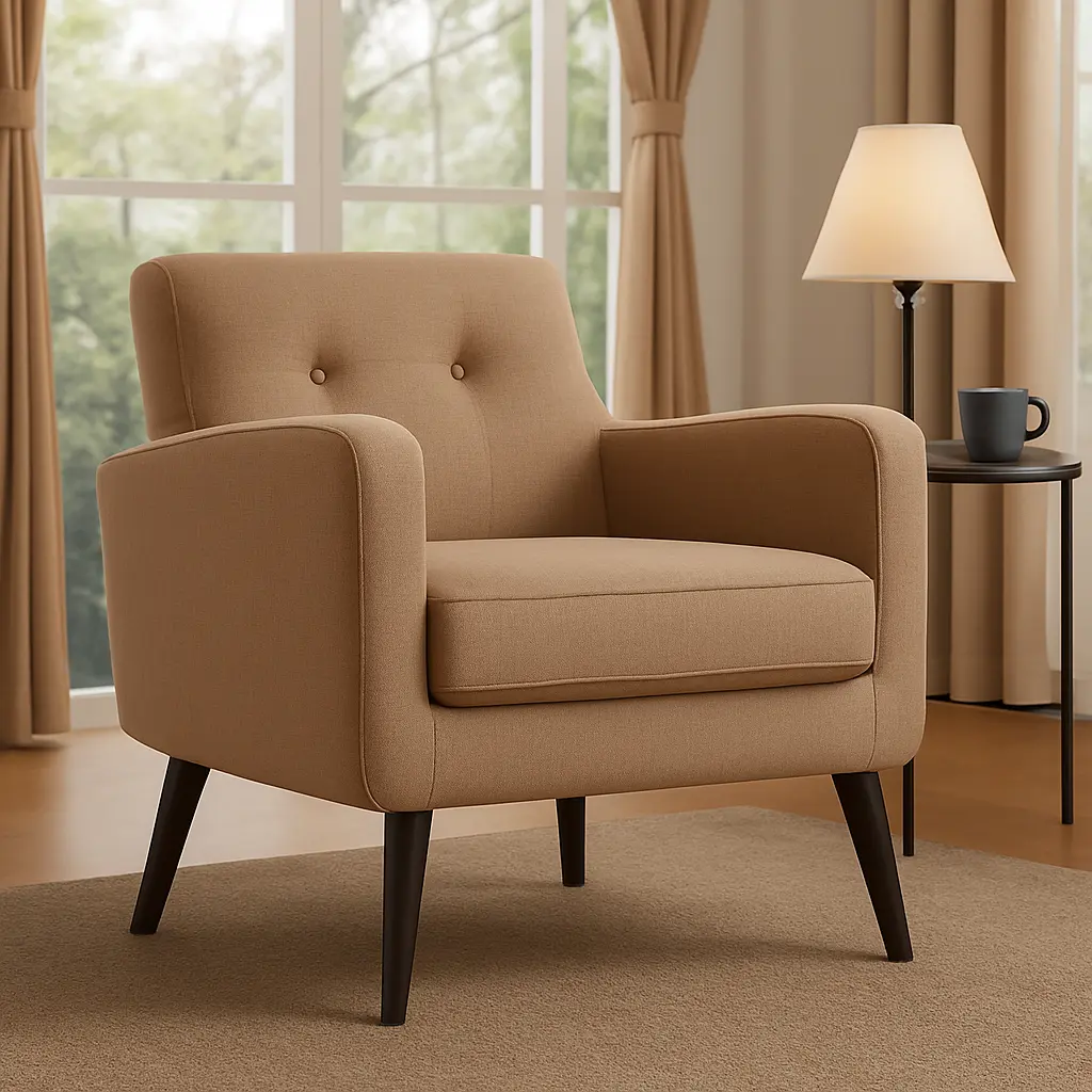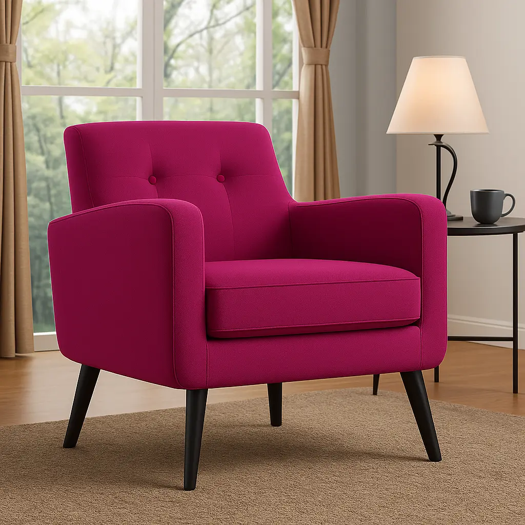 Plush and pretty in any color or fabric of your choice, this eye-catching Aria Premium Vintage Armchair from Asghar Furniture is a sumptuous blend of contemporary flair and vintage expression. A tufted seat back is matched with curved arms and thin espresso legs reminiscent of mid-century luxury style. Have some fun with your decor with Aria Premium Vintage Armchair.