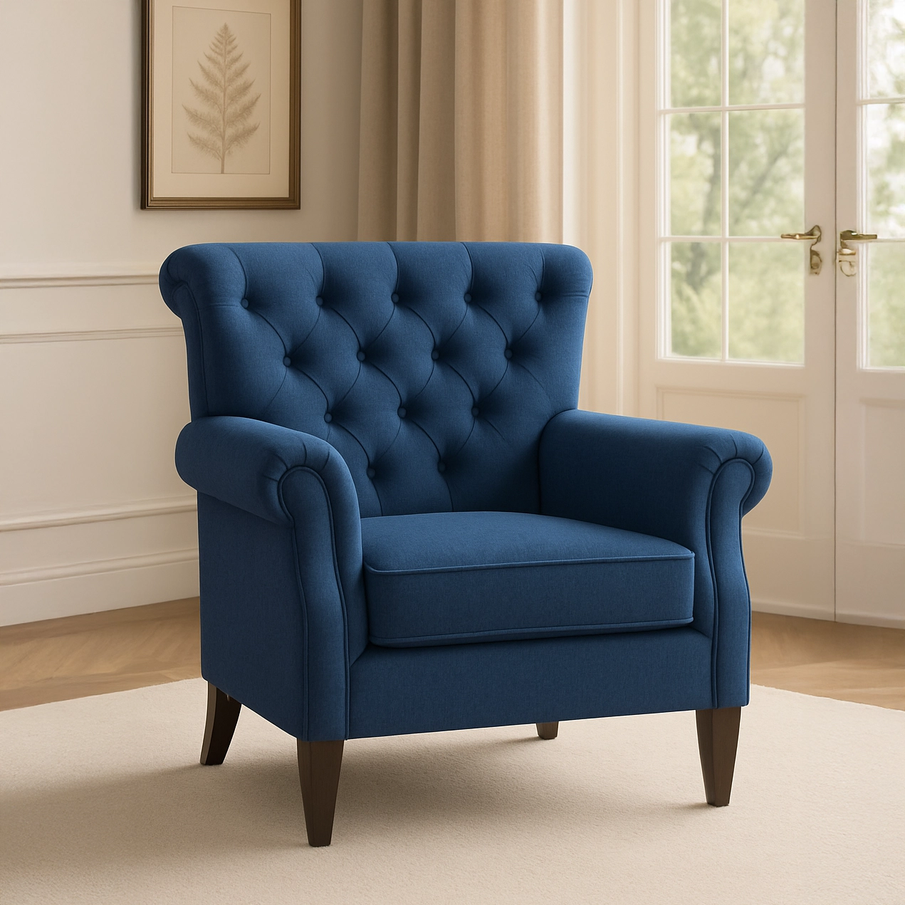 Classic and contemporary elements collide in Brust Modern Armchair. This armchair is crafted with a wooden frame, foam fill, soft seating, and fabric upholstery for an approachable and inviting look. A rolled back and arms bring out this design’s traditional side, while diamond-tufted details