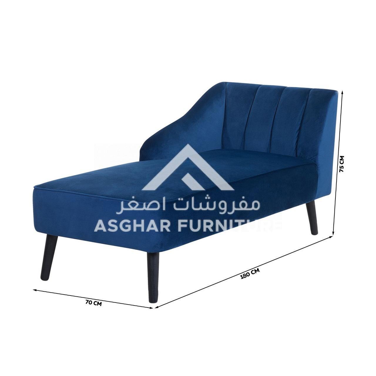At Asghar Furniture, Glamorous in design this Cobalt Velvet Chaise longue perfectly blends a high-end look and comfort, a stunning statement piece for any living setting. Its curvaceously shaped and pleasantly plush back showcases channel tufting that beckons you to take a moment and sit back comfortably. The slanted arm and simple tight seat round out the look, giving this lounger a clean, modern feel.