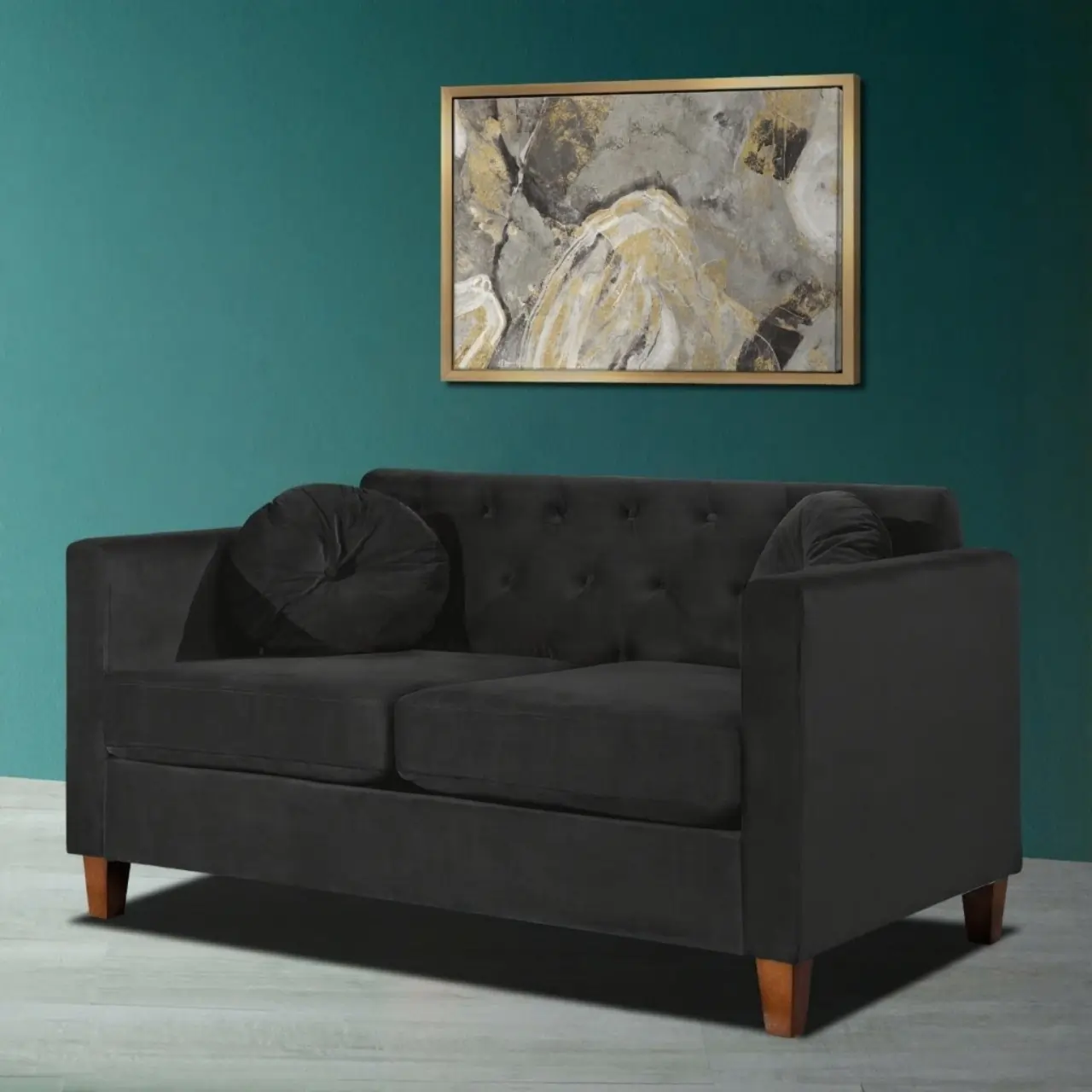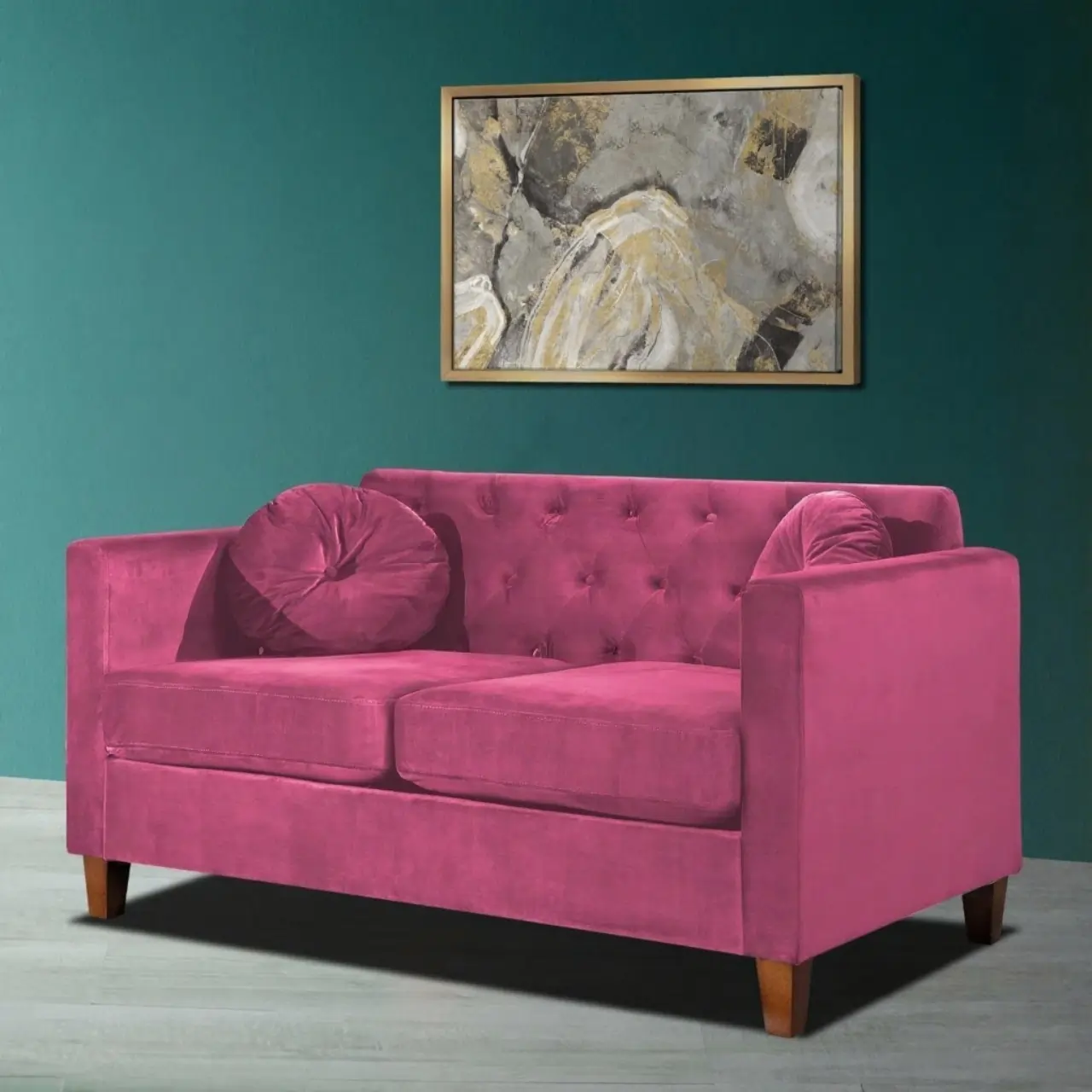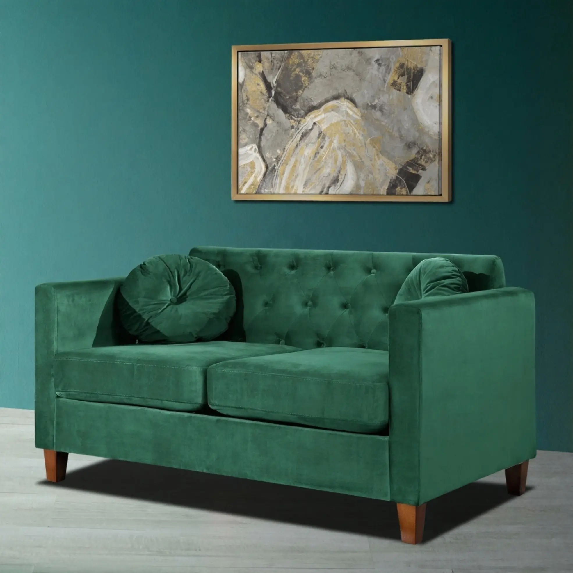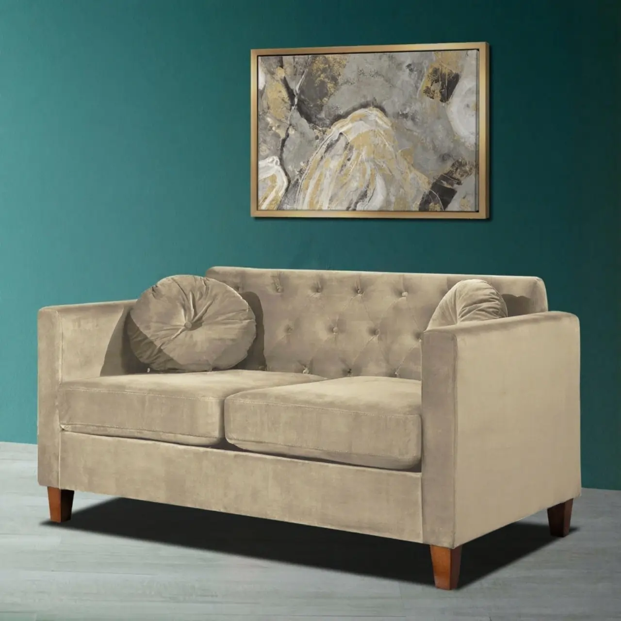 Kitts Classic Loveseat, A true style sophisticate, the chesterfield sofa has made its appearance in upscale glam. This Love Seat has a button tufted back and features crushed velvet upholstery.