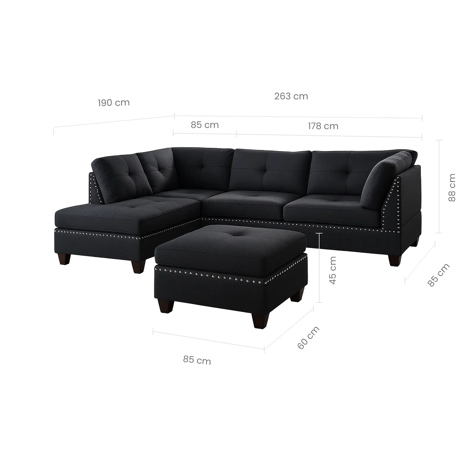 - Size: Ottoman: 85cm (W) x 45cm (H) x 60cm (D)