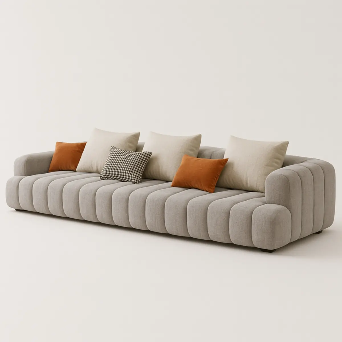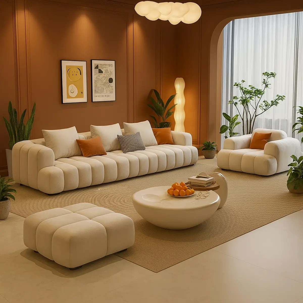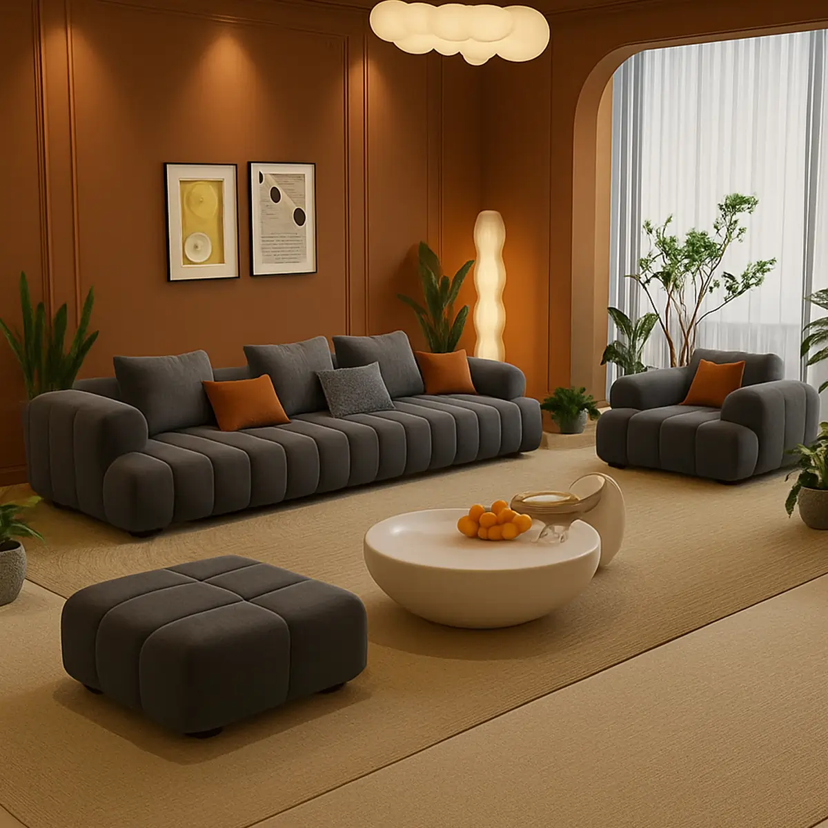 The Maison Luxe Sofa Set combines modern luxury with everyday comfort. Built with a solid wood base, plush foam, and soft linen upholstery, it features a rounded cloud-inspired design and deep channel tufting for a clean, contemporary look. Durable, breathable, and stylish, it’s perfect for modern, minimalist, or luxury living rooms.