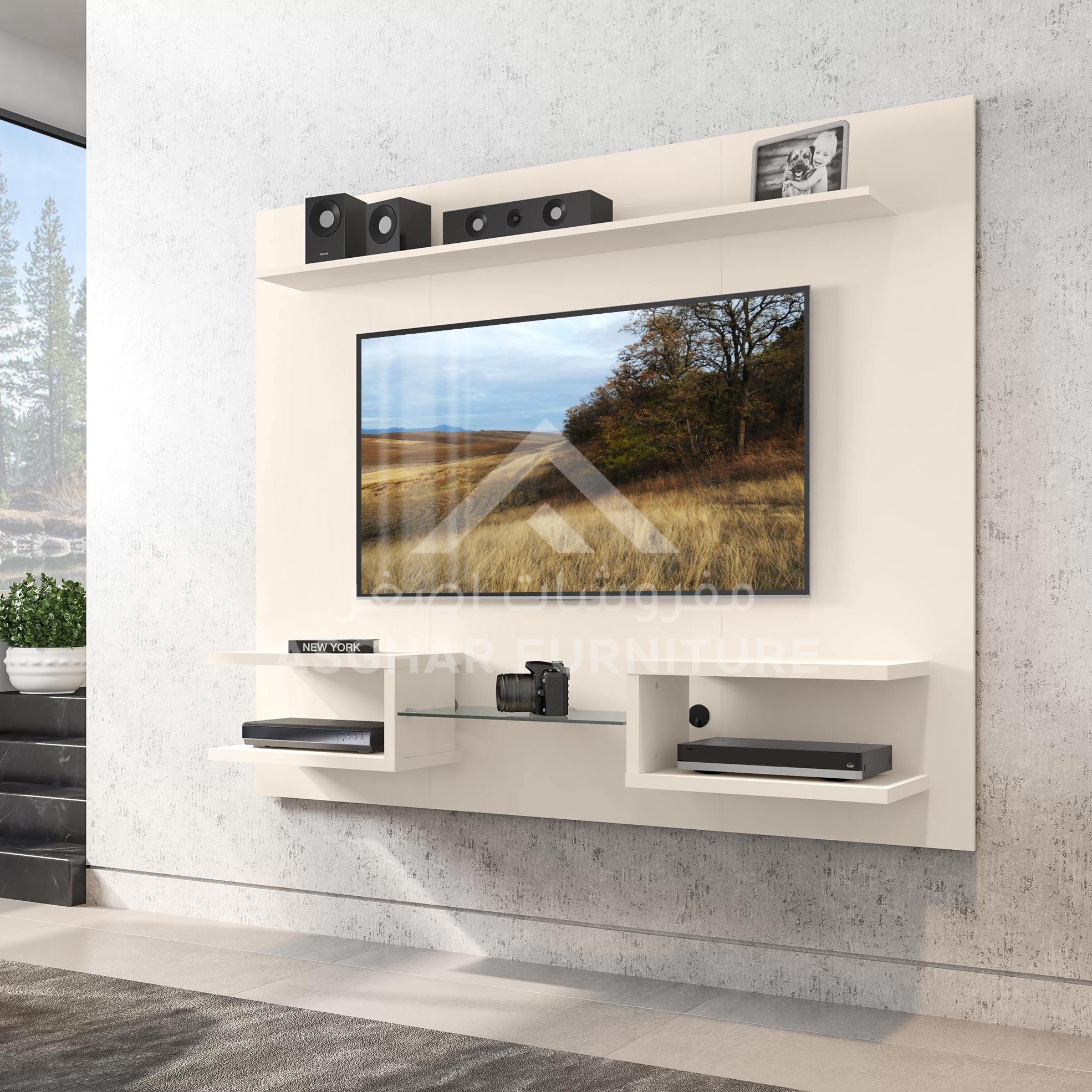 Elevate your living area with the floating entertainment center, a modern and sophisticated take for showcasing your TV, media accessories, speakers, decorative accents, and beyond. With its clean lines and seamless design, it features open pop out shelves on either side, with a center glass shelf that’s perfect for a DVD player, coffee table books, magazines, and more.